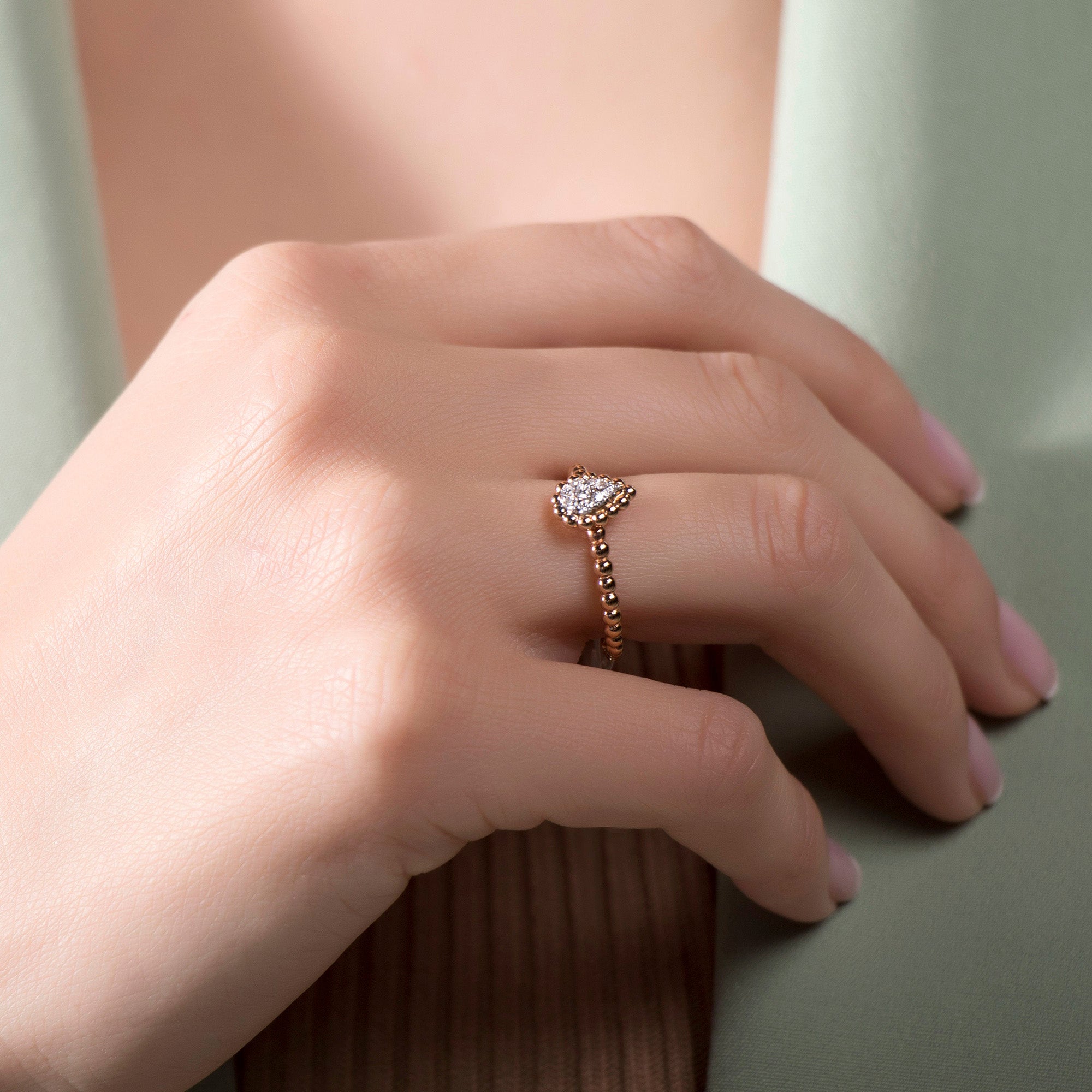 Minimal Pırlanta Damla Yüzük / Drop With Bubbles