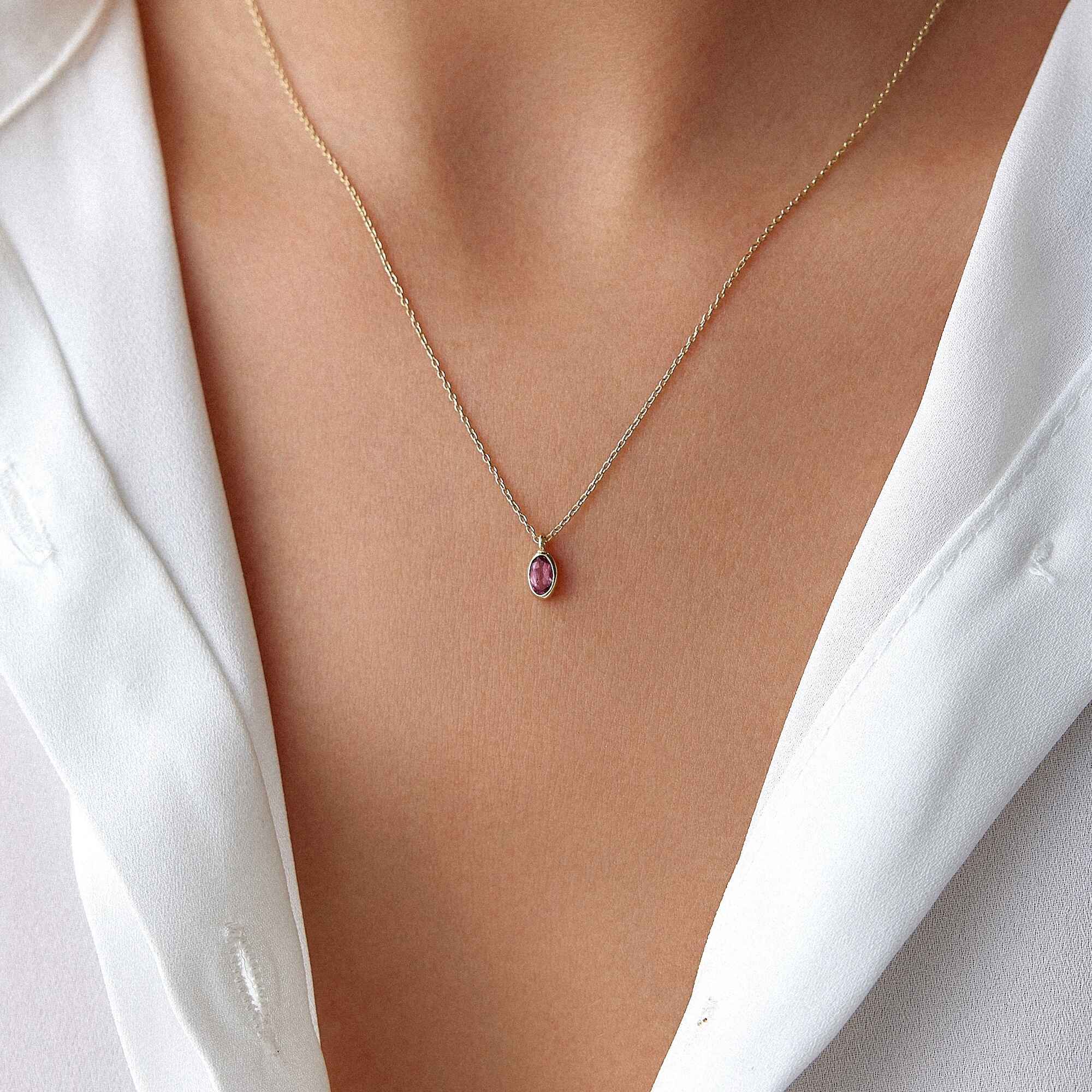 Oval Kesim Pembe Turmalin Tektaş Kolye