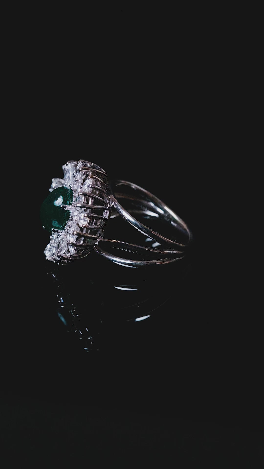 Damla Pırlantalı Kabaşon Kesim Zümrüt Yüzük / Large Cabochon