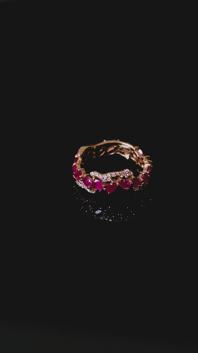 Oval kesim yakutlara özenle seçilmiş pırlantaların eşlik ettiği zamansız tamtur tasarımımız.